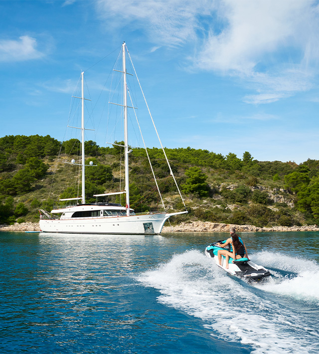 Let the yacht LOVE STORY do the work for you – sail away to a blissful escape! Enjoy exquisite beauty and relaxation from every angle of this 43.25-long luxurious vessel.