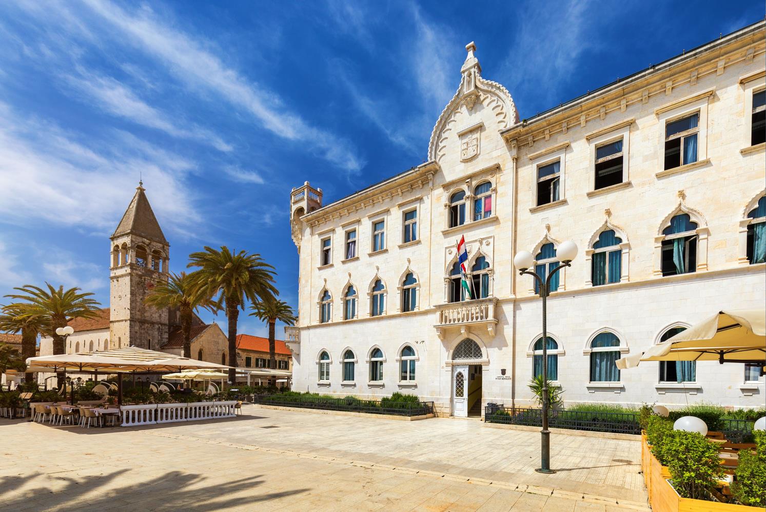 Trogir is one of the pearls of the Adriatic. This beautiful ancient town, under UNESCO protection, is situated on a small island. This island is on both sides – land, and sea – connected by bridges. So, besides being associated with the mainland, Trogir is also connected with the small island Čiovo. While entering the old town and walking through the narrow streets of Trogir, you will feel history all around you. All the buildings in Trogir’s old center are a mixture of different art styles, mainly Renaissance and Baroque ones. The bell tower of the Cathedral of St. Lawrence, built in the 13th century, offers a stunning view.